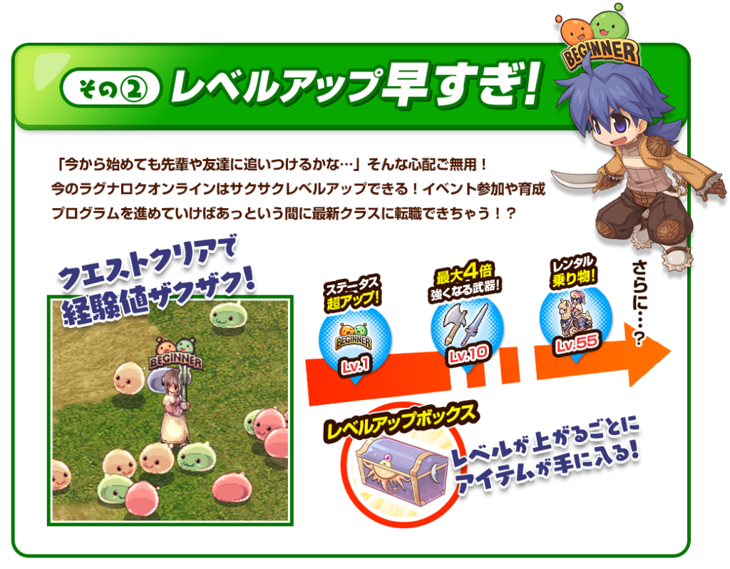 「マゾいレベル上げはもう過去の話!サクサク上がる爆速レベリングで、あっという間に上級者の仲間入りを果たそう!」