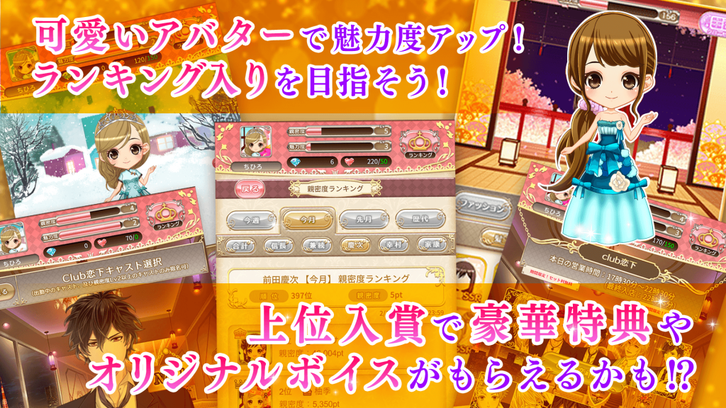 本作の魅力は、何といってもその斬新な設定と、歴史上の人物たちがホストとして生きる姿のギャップ、そして彼らとの間に芽生える心ときめく恋愛ストーリーです。美麗なイラストと豪華声優陣によるフルボイスが、物語の没入感を高め、プレイヤーを「戦国」の世界へと引き込みます。また、恋愛要素だけでなく、ホストクラブの経営要素や着せ替え、スチルコレクションといった豊富なやり込み要素も、飽きずに長く楽しめるポイントです。
